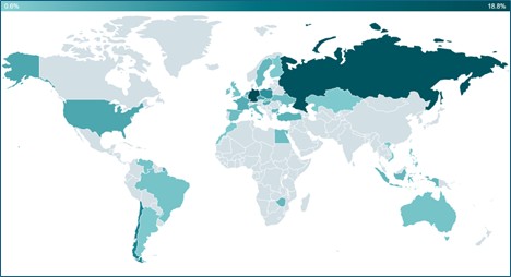 Imaginea 11. Malware și escrocherii NFC pentru Android – distribuția geografică H1 2025